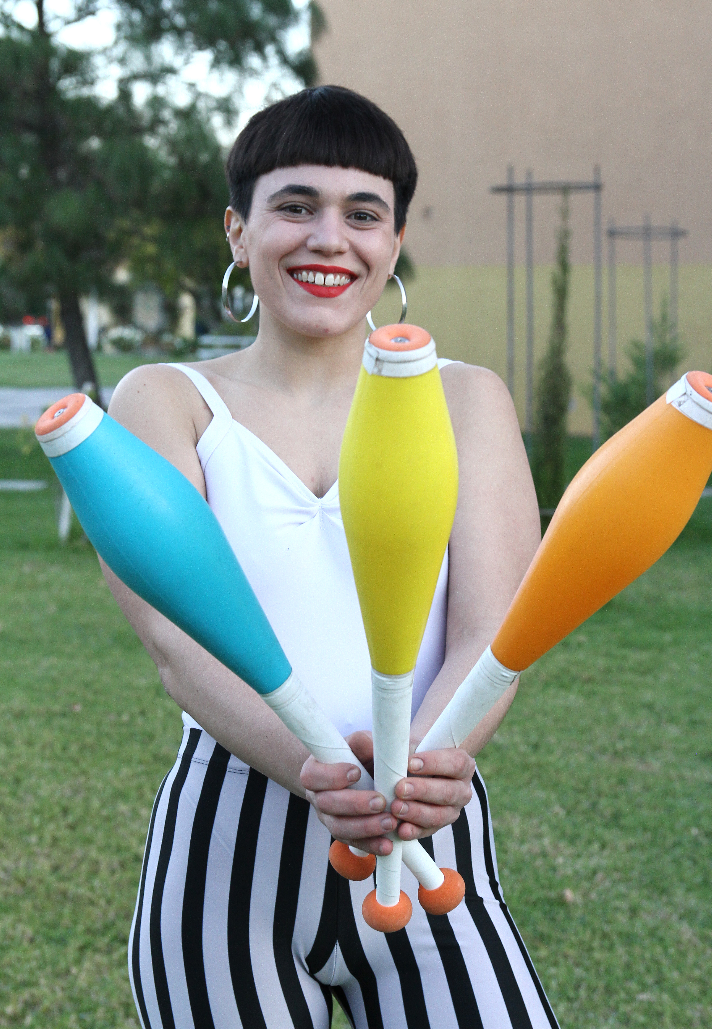 "Pasa que la gente nos ve mal cuando decimos que hacemos circo, creen que es lo que se hace en el semáforo y no es así. Hacemos circo callejero, pero vamos a un lugar y colgamos nuestro telón, estamos en una plaza, en un merendero o una escuela cuando ven eso, piensan distinto".