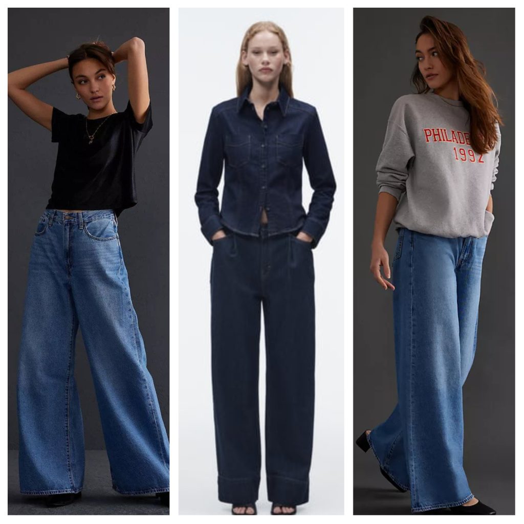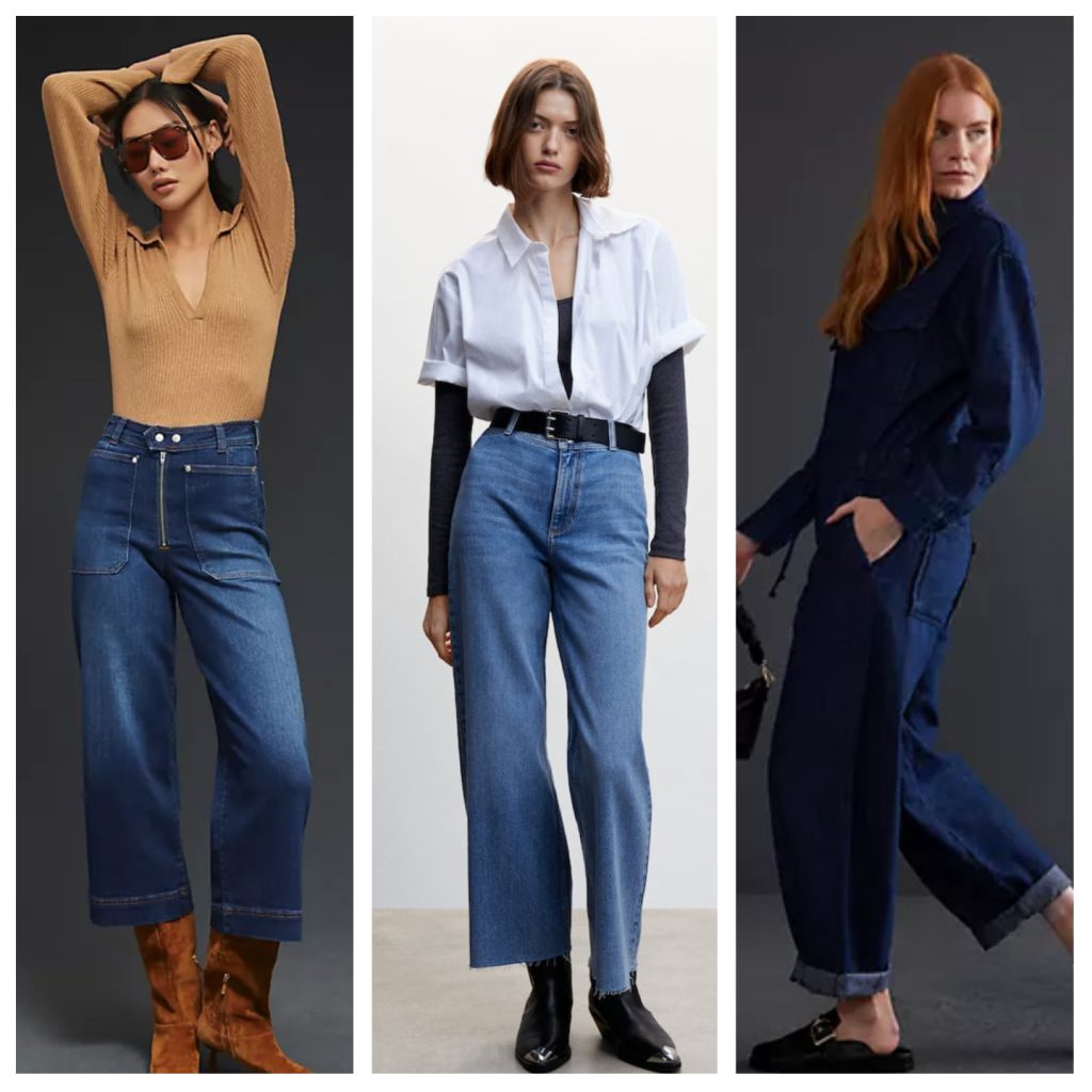 Los dobladillos anchos que tocan el piso fueron una de las mayores tendencias de pantalones de 2022; ahora, se están apoderando de la escena de los jeans de 2023.