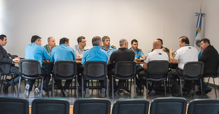 En concordancia con lo dispuesto por el Gobierno nacional a través del Decreto de Necesidad y Urgencia N° 260/2020, Munisaga encabezó la reunión a la que asistieron el jefe de Policía de San Juan, Crio. Gral. Luis Martínez; el subsecretario de Seguridad, Abel Hernández e integrantes de la plana mayor; el comandante principal, Javier Villalba de Gendarmería Nacional; el comisario inspector, Silvio Carrizo; y el Comisario Gabriel Achenbach de Policía Federal Argentina. Además de los representantes de la Policía de Seguridad Aeroportuaria en San Juan, subinspectores José Luis Ribeiro y Daniel Zarate.