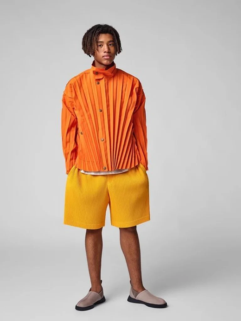 Miyake es conocido por el uso del plisado en sus prendas, por sus sencillos jerséis de cuello vuelto como los que popularizó Steve Jobs o por su línea de bolsos Bao Bao con patrones geométricos, entre otras muchas creaciones.