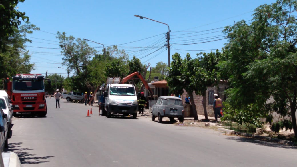 Lucas Novaro, de 24 años de edad, se encontraba trabajando en un tendido ubicado sobre calles Quiroga y Valle Fértil, de Rawson, cuando sufrió el accidente.