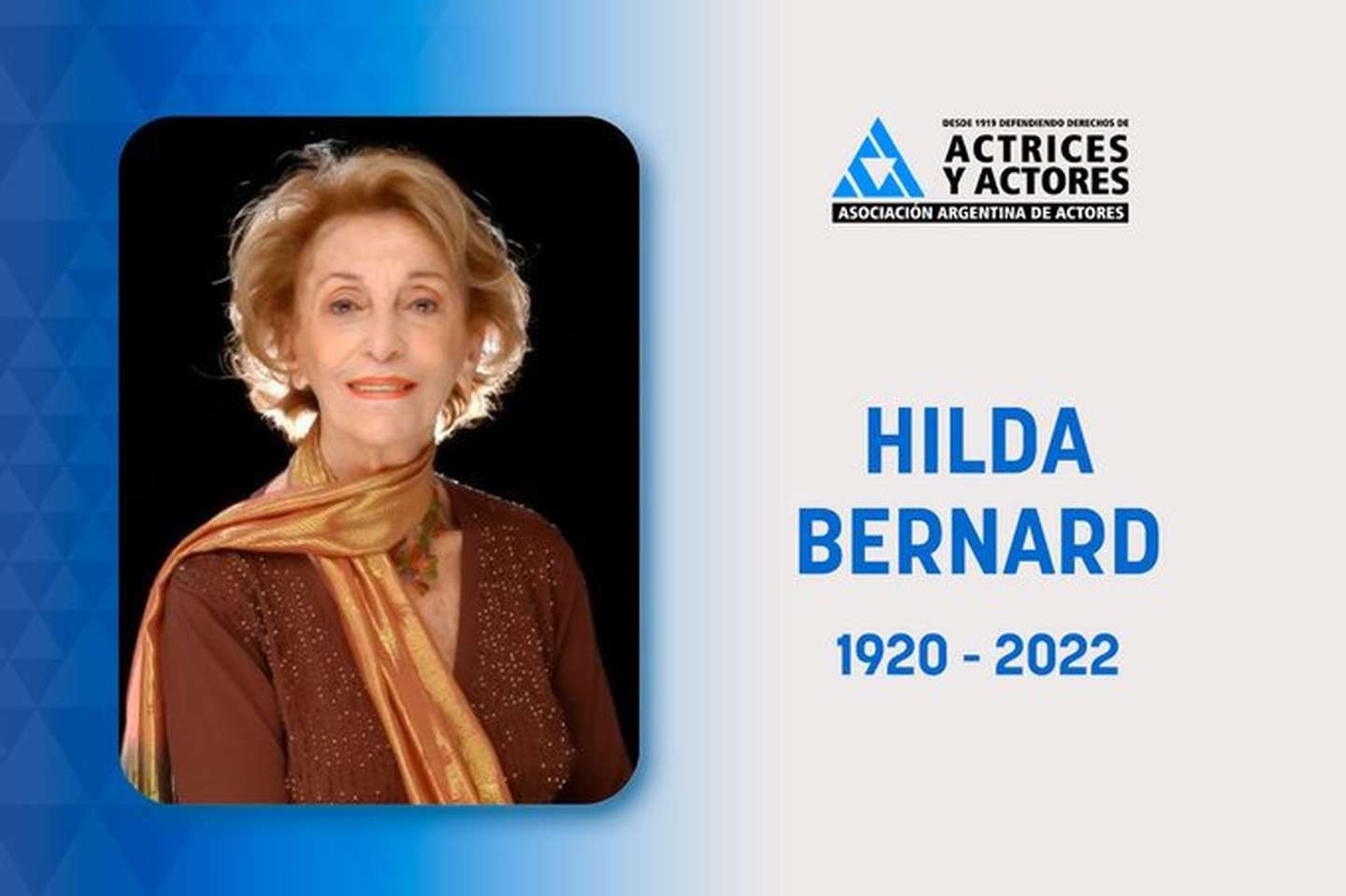 A los 101 años, murió la actriz Hilda Bernard, que tenía una larga trayectoria en la televisión argentina. Fue figura, entre otros programas, de Chiquititas, Rebelde Way y La extraña dama.