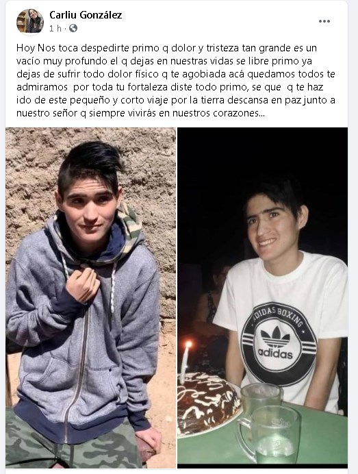 El chico oriundo de Pocito permaneció internado en el Hospital Rawson y falleció en las últimas horas. La triste noticia fue confirmada por familiares en las redes sociales.