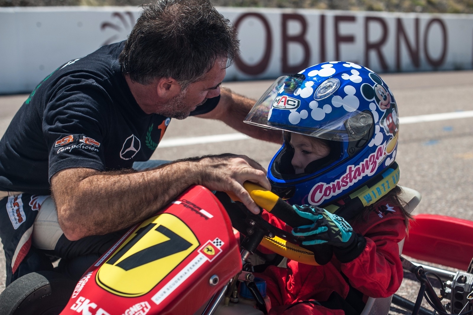 "Hago muy buenos tiempos y le gano a mi papá", dice entre risas. También cuenta que "me gusta más el karting que tengo ahora porque tiene motor Lifan que es más rápido que el Still que tenía antes", dice Constanza quien decidió ponerle el número 17 (día de su cumple en agosto), como su papá en el auto de competición, aunque hace poco lo cambio por el número 25, fecha de cumple de Delfina, la hija menor.