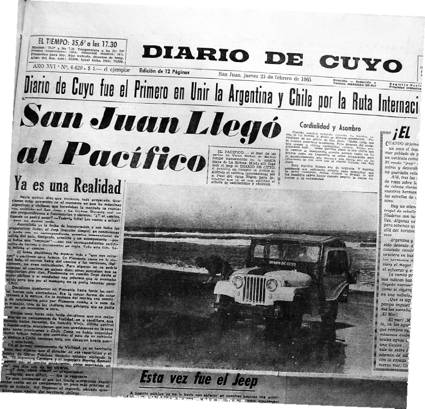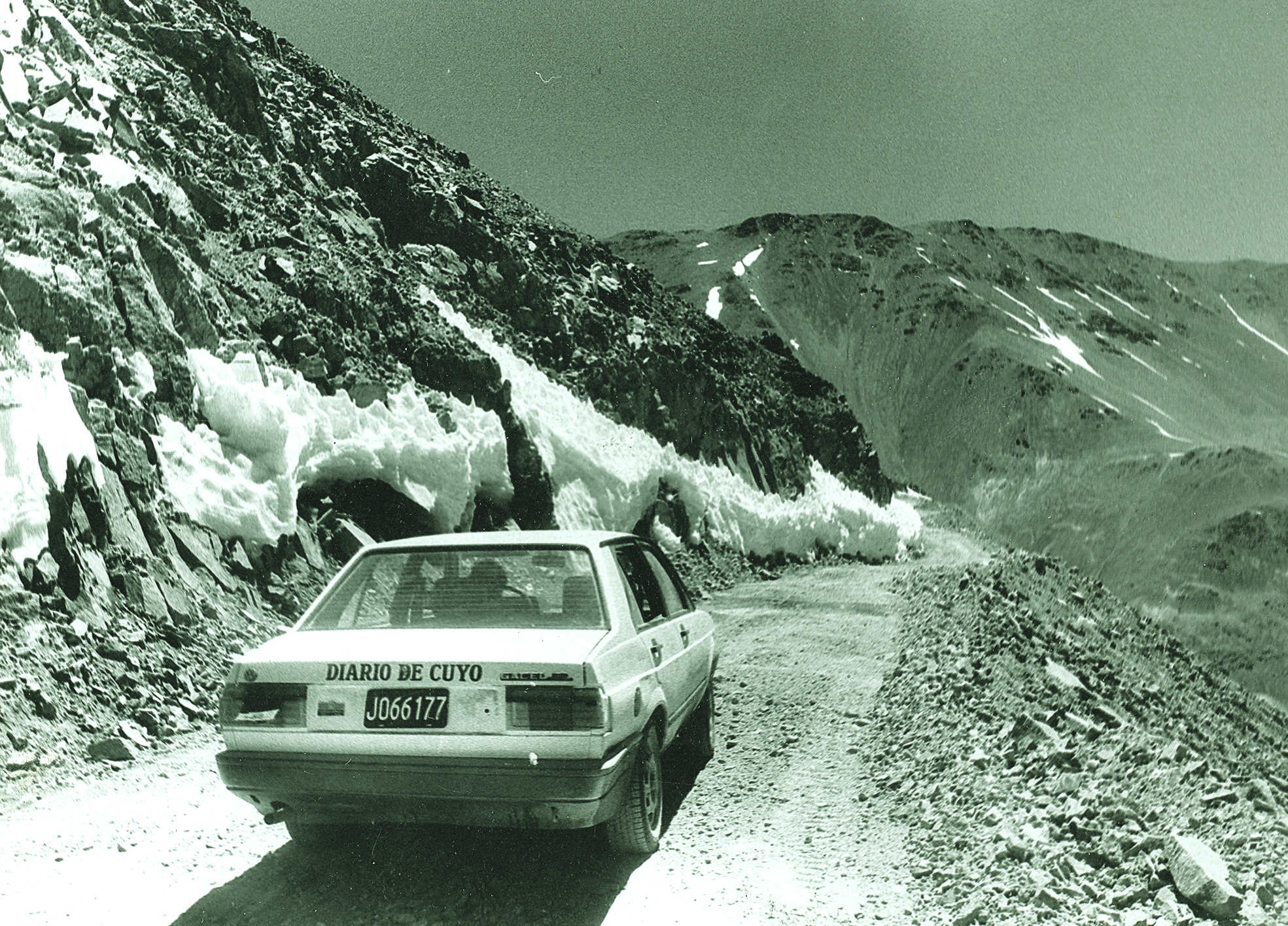 Nuevo viaje. La movilidad de DIARIO DE CUYO transitó el camino por Agua Negra en su reapertura (enero de 1991), tal como lo había hecho en la inauguración de la misma obra vial en 1965. A una semana de quedar habilitado, más de 700 vehículos ya habían utilizado el paso.