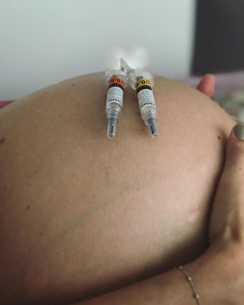 “265 pinchazos, cada mañana con todo el amor del mundo. Pese a los dolores y moretones, hoy llegando a su fin #SePuede #Amordelpuro”, escribió Tobal dos días antes de dar a luz.