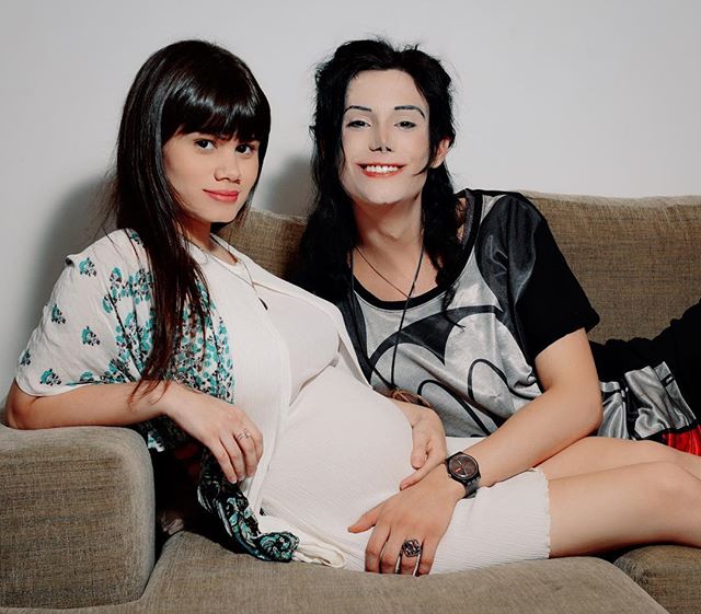 La pareja se conoció hace cinco años gracias a las redes sociales: "Cuando me likeó una foto de Instagram le empecé a hablar, porque me impactó su nariz… Después de unas semanas de chatear, la invité a tomar algo al shopping. Ese día nos dimos nuestro primer beso en la boca y nunca más nos separamos", contó él luego de dar la noticia del embarazo.