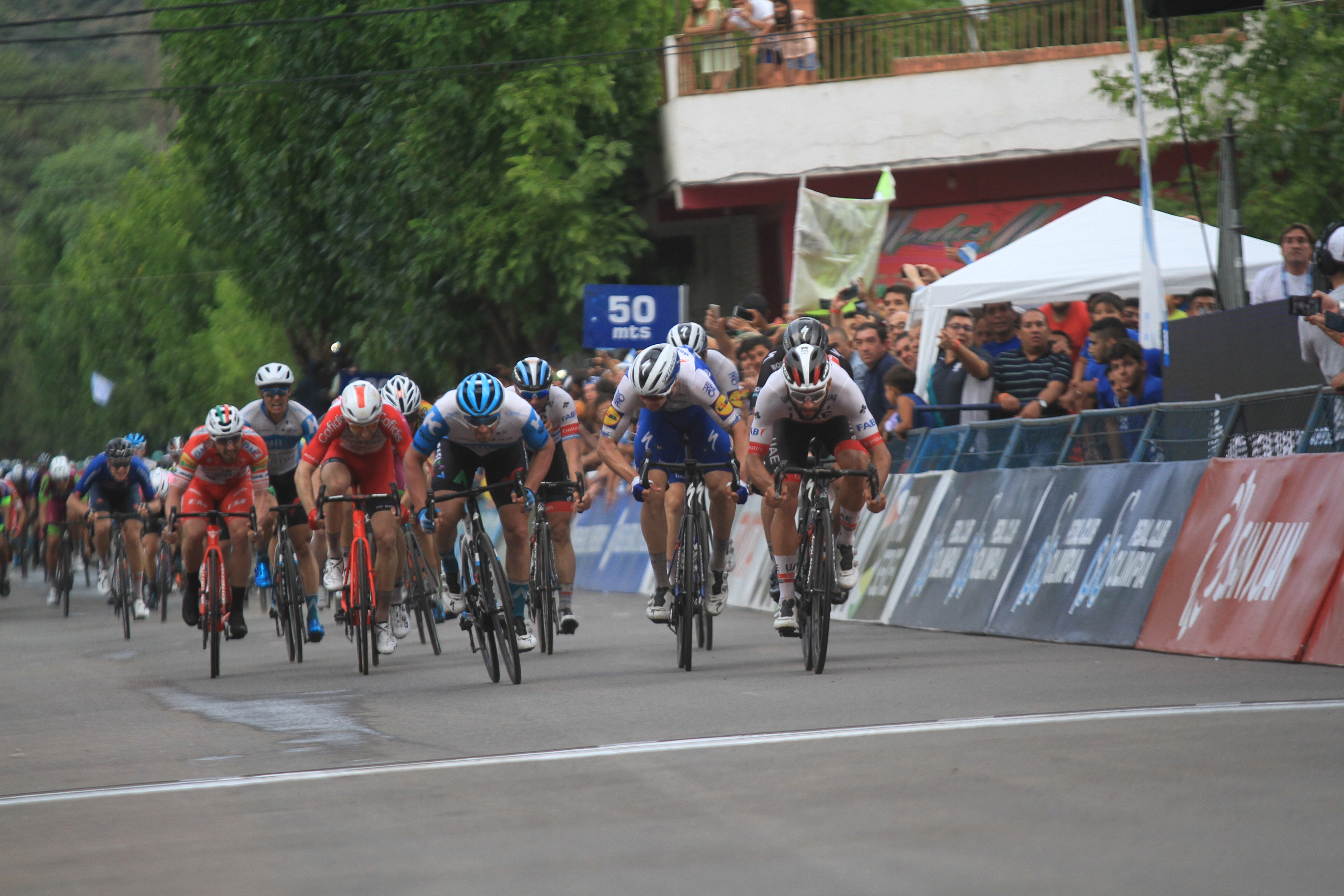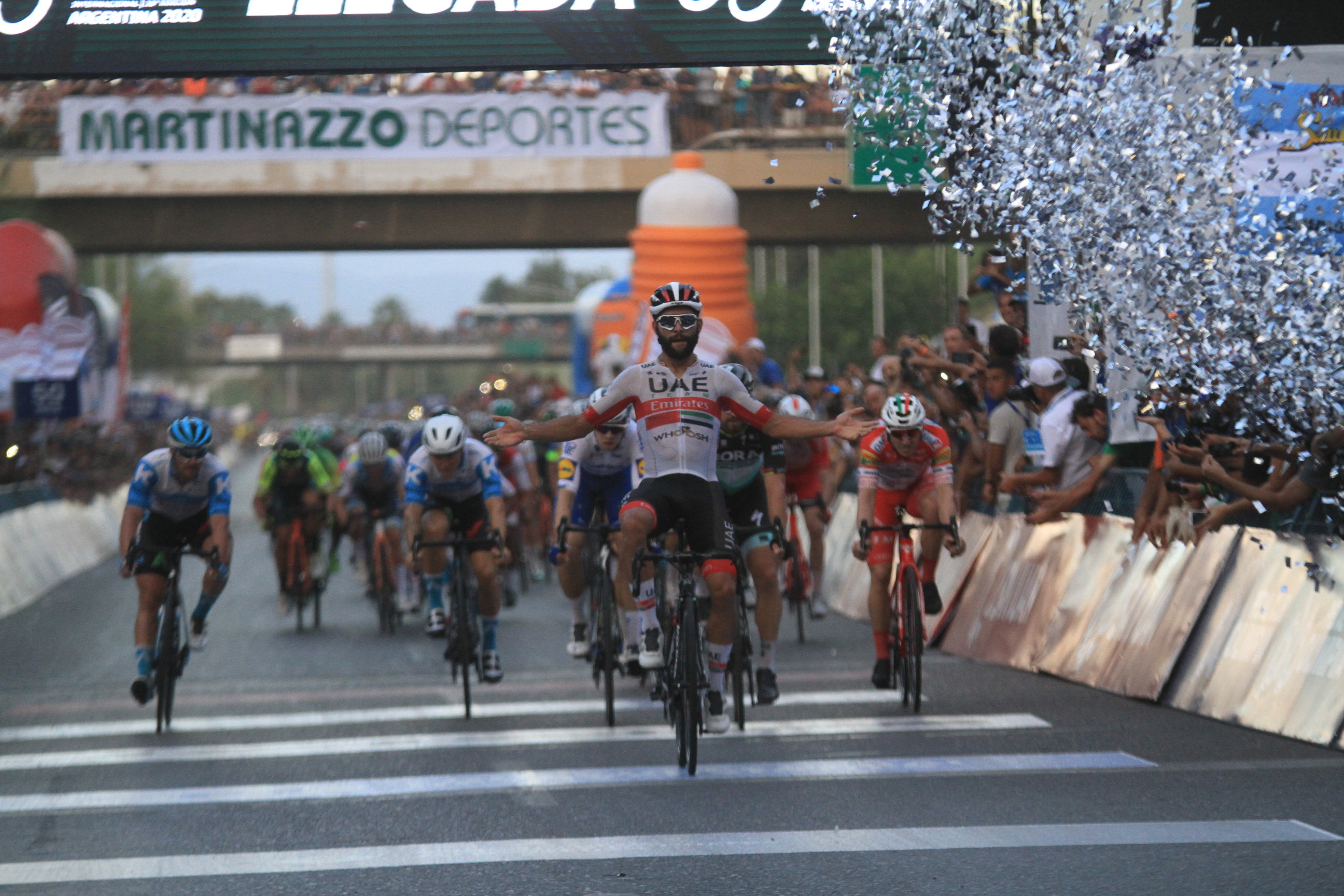 La etapa más larga de la Vuelta, que unió Jáchal con Valle Fértil, se definió como siempre en embalaje masivo. Y, en ese tema, nadie mejor que el UAE para hablar con autoridad. Richeze lanzó a Gaviria y final de discusión.