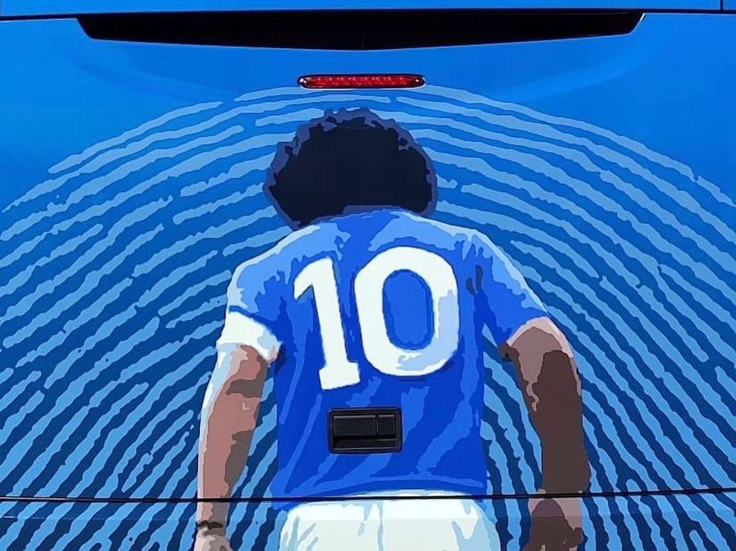 El vehículo está ploteado con imágenes del Diez, que en sus años italianos conquistó cinco títulos con el cuadro napolitano. Toda una hazaña para la década de los ‘80 y ‘90, ya que el club no era de los más fuertes del país.