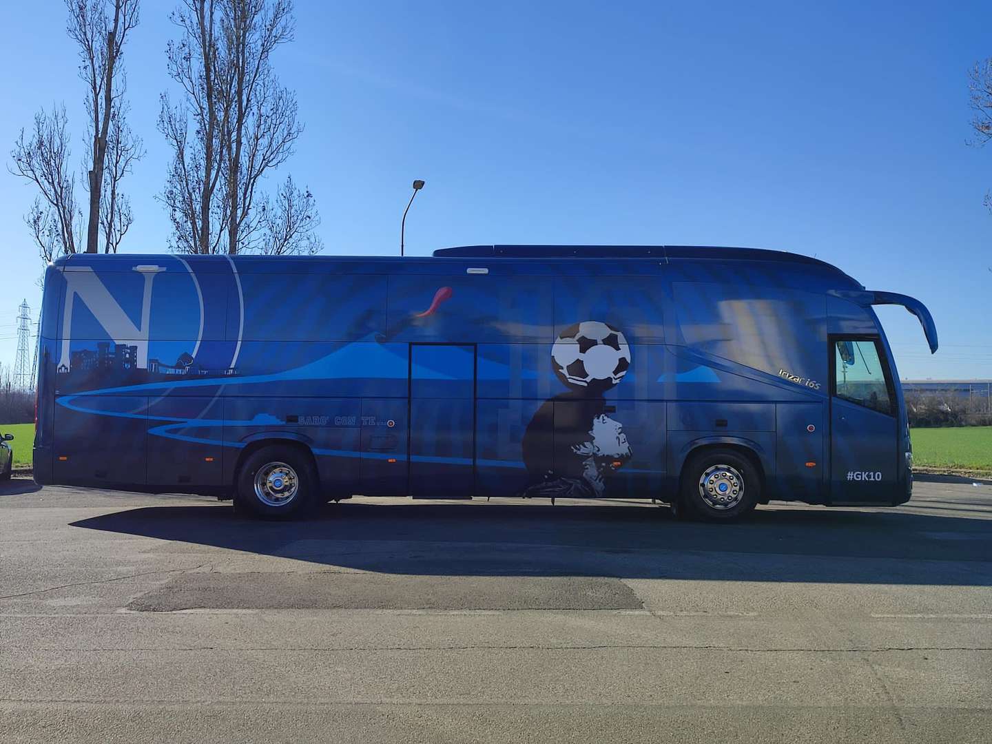 Napoli y Diego Maradona van de la mano. El equipo italiano presentó este miércoles el increíble micro para los jugadores del plantel de Primera. Su debut será este jueves en la previa del partido con Barcelona, por la Europa League.