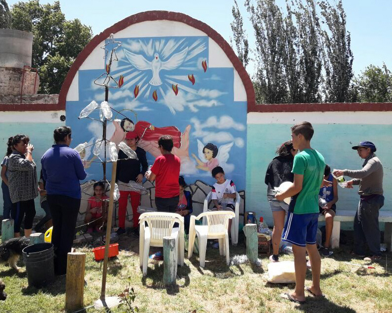 La comunidad religiosa de la Virgen Niña, de Albardón, quisieron darle un sentido ecológico a la Navidad. Por eso decidieron hacer un Árbol de Navidad utilizando elementos reciclables como botellas de plástico y papeles de colores. También harán un Papal Noel con cartones y CDs.