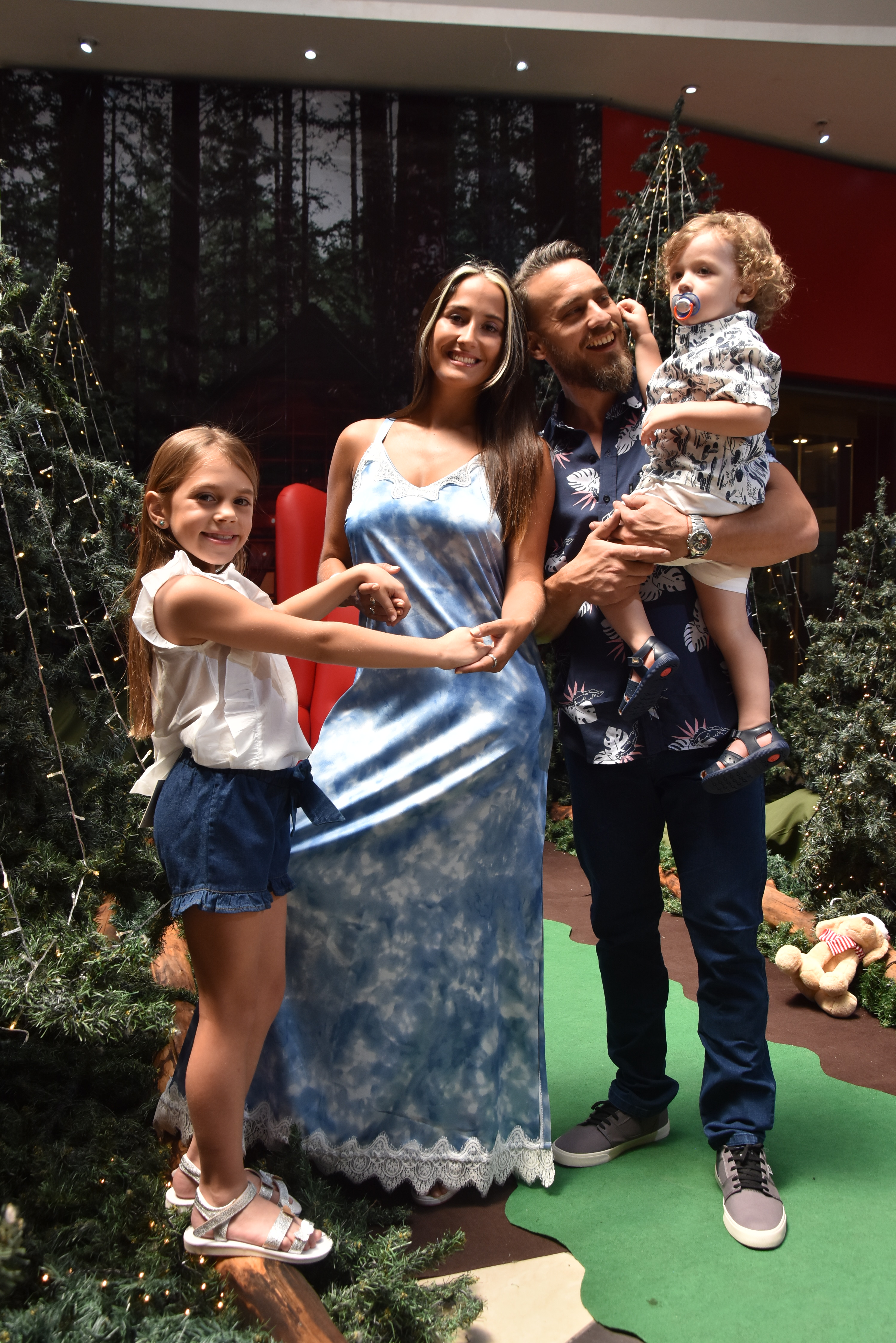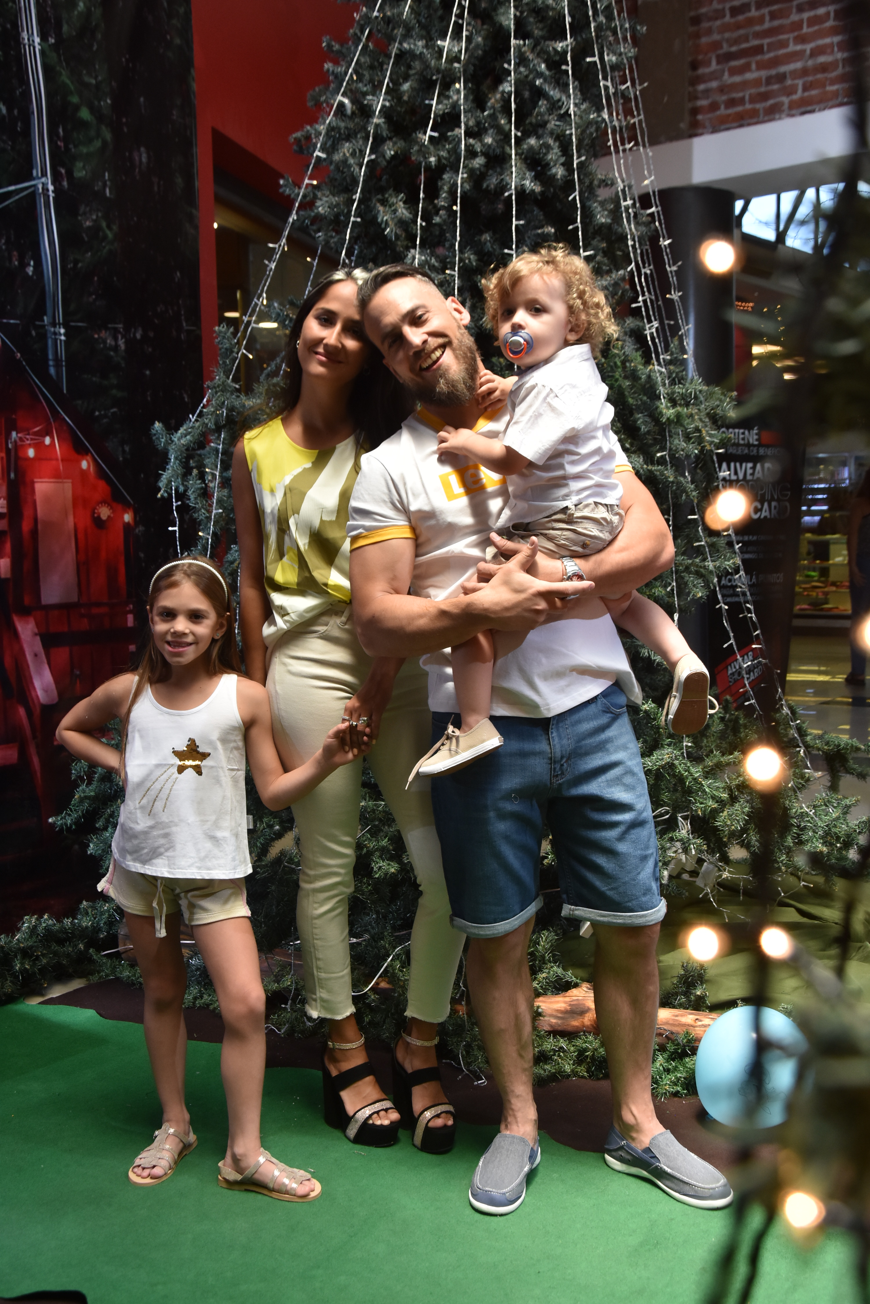 Negro color de la noche de paz, la noche de amor. Florencia con un mono negro con cortes irregulares en la espalda y en el frente ($4800 Bernata Bocchi) y sandalias color nudé ($4950 Bernata Bocchi). La pequeña con remera de broderie ($1400), short ($890) y sandalias con brillo y mariposas ($1200), todo de Mimo & Co. del local de Trigal. Leoncito vestido también de Mimo con chomba con inscripción ($990), bermuda cargo ($1750) y zapatillas náuticas al tono ($950). Esta ropita es de Trigal. Su papá Roberto con camisa ($3250) y pantalón ($4050) y zapatos de vestir (6775) de Tascani.