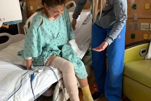 La familia consultó con el médico de la hija en el camino de regreso a Indiana. Éste le dijo a Brown que llevara a Kylei a la sala de emergencias del Riley Hospital for Children en IU Health, y fue entonces cuando la familia descubrió que la infección detrás de su rodilla era una fascitis necrotizante, una rara enfermedad que se alimenta de la carne, que avanza muy rápido y es mortal. 1 de cada 3 personas que la contraen, mueren, dicen los Centros para el Control y la Prevención de Enfermedades.