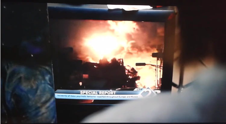 Al inicio de la trama cronológica, cuando está a punto de desatarse el apocalipsis para la protagonista, se ve que ella casualmente enciende el televisor y ve un reportaje sobre un accidente que detonó un incendio y muchos muertos.
