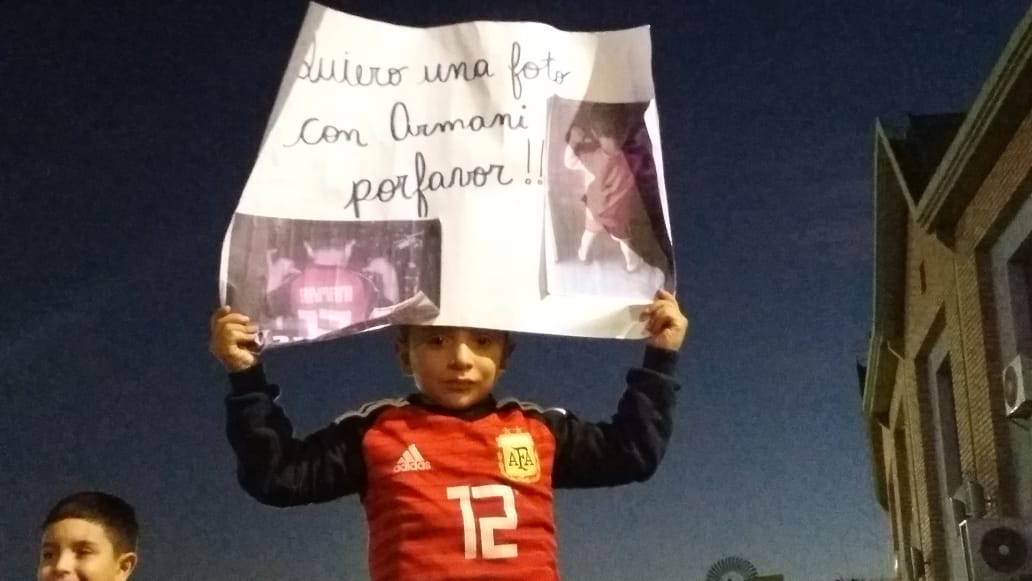 Pero en la espera de la Selección el hotel hay fanáticos para todos los gustos. Subidos a los hombros de un familiar está el pequeño Dylan, que llegó bien temprano desde Rawson.