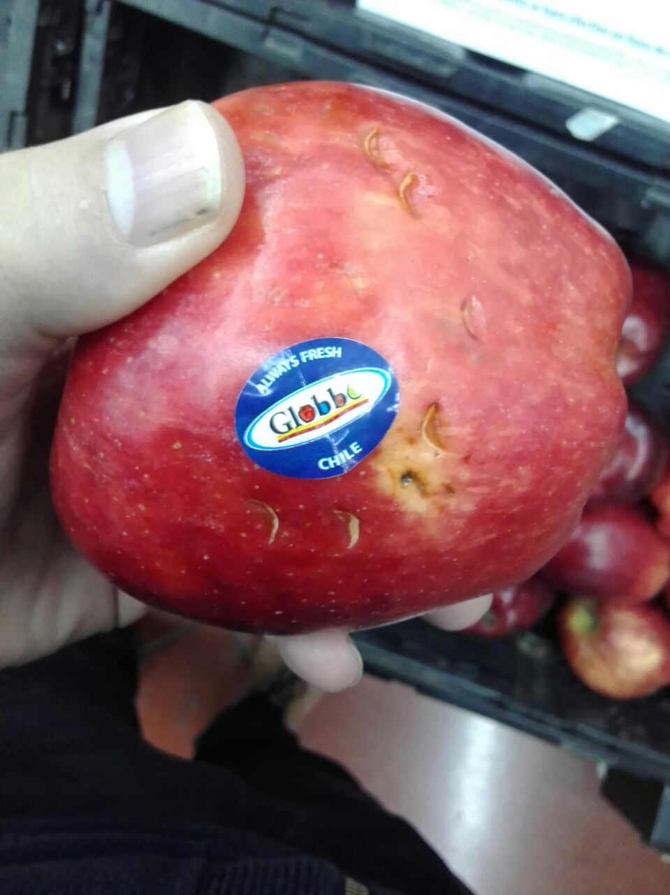 El lector Matías Cortéz envió una imagen y el siguiente comentario: "En el Walmart de Rivadavia me encontré con la mala noticia que les importa muy poco la industria nacional. Entre otras cosas, encontré que las manzanas que venden no son argentinas, ni rionegrinas ni calingastinas, son chilenas. En muchos lugares la manzana no vale nada por esta maldita política de importación".