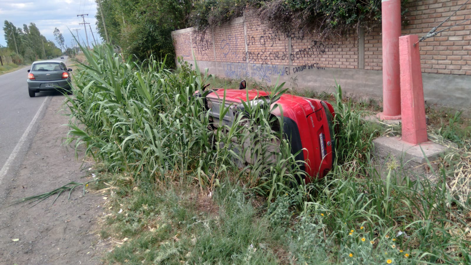 Es que la Suran terminó en un zanjón volcada luego de colisionar con el otro vehículo. Viajaban dos personas, entre ellas un menor, que fueron trasladados al Servicio de Urgencias del Hospital Rawson. Ninguno revestía gravedad, aclararon a este diario desde la Comisaría 17ma.