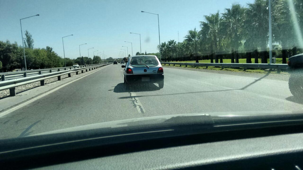 Este es el ejemplo de una mamá imprudente. El niño sacando su cabeza por la ventanilla del auto. Esto fue en avenida de Circunvalación.