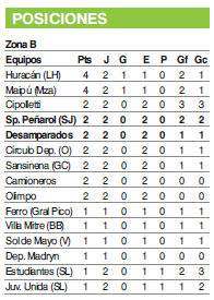 Sportivo Desamparados no largó como soñaba la semana de su centenario. Es que anoche dejó de manera increíble dos puntos en el camino. Le ganaba a Sol de Mayo de Río Negro pero la visita se lo empató 1-1 en el cuarto minuto de descuento. Así, se privó de liderar junto a los mendocinos Huracán Las Heras y Maipú.