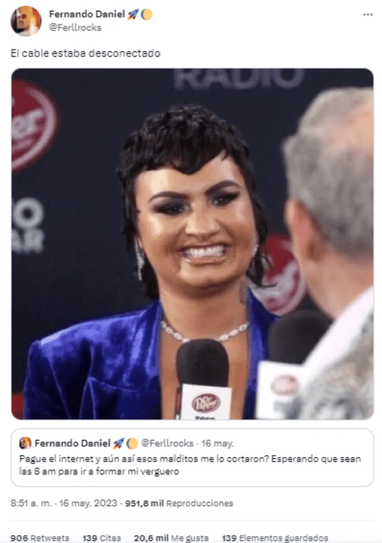 "¿Pague el internet y aun así esos malditos me lo cortaron? Esperando que sean las 8 am para ir cag… a piñas”, había asegurado el usuario "Ferllrocks" mediante la red social del pajarito azul. Este tuit superó las 946,1 mil visualizaciones y encantó a todos los internautas.