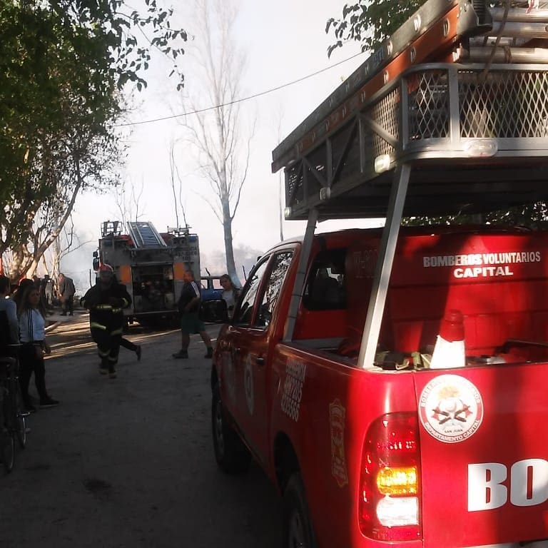 Según las fuentes, cuatro dotaciones de Bomberos de la Policía de San Juan y Voluntarios de Chimbas trabajaron para sofocar un siniestro que comenzó en unos cañaverales que lindan con una casa donde funciona un taller mecánico.