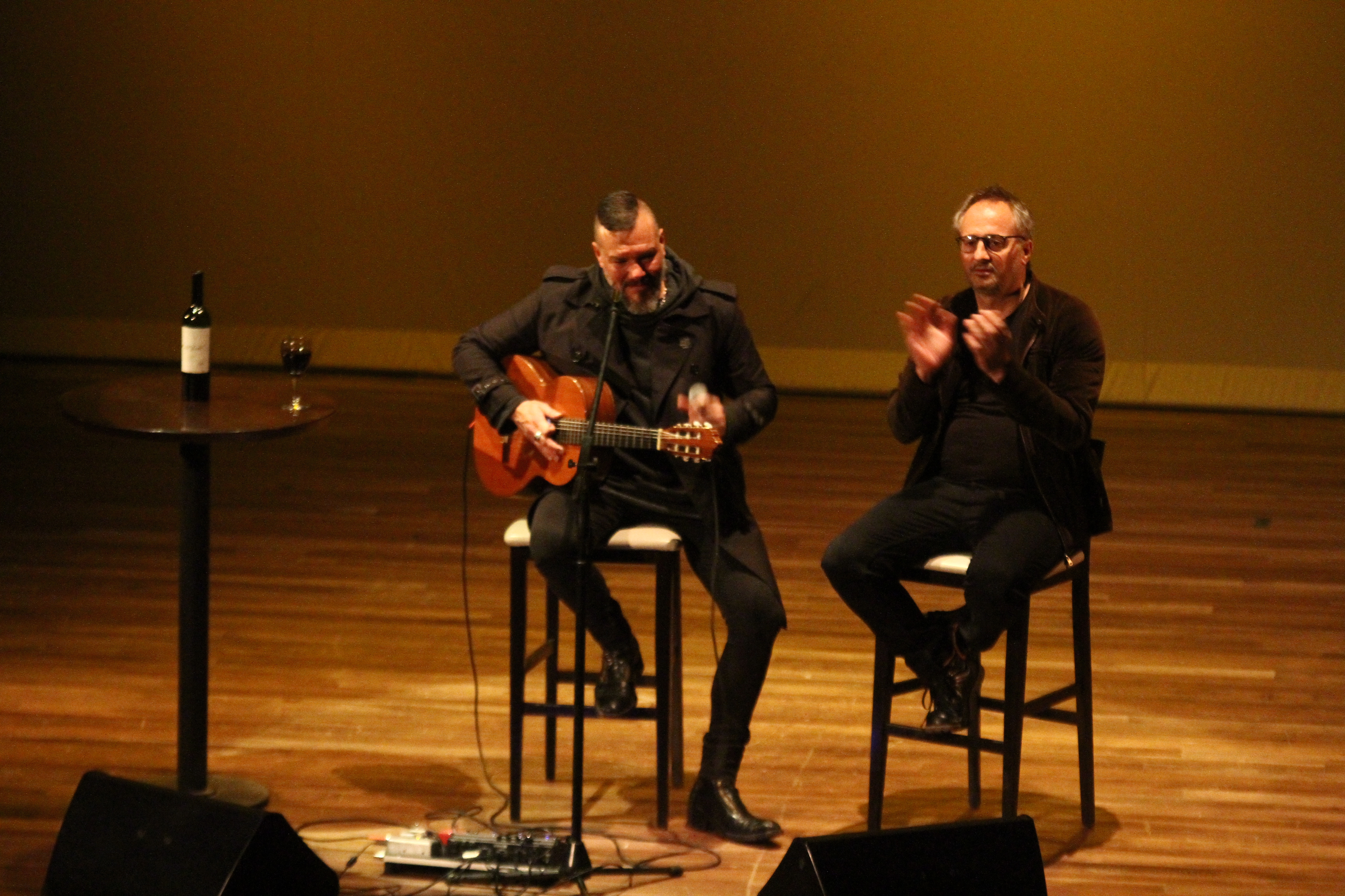 Una copa y una botella de vino tinto, la guitarra afinada y la presencia física de Fernando Ruiz Díaz, fueron los tres elementos contundentes que crearon un clima de intimidad en el escenario y que el público sanjuanino tuvo un contacto de ida y vuelta especial. De esta manera, el show acústico celebrado anoche en la sala Auditorium del Teatro del Bicentenario contuvo varios pasajes interesantes, un ritual casi ‘sagrado’, un encuentro de fogón como le gusta decir al vocalista de Vanthra y Catupecu Machu. El principal pretexto para el encuentro, fueron las experiencias vividas en el eclipse solar, donde el músico fue co-protagonista junto a la masa de visitantes quienes atestiguaron el evento astronómico del año en la localidad de Bella Vista y que todo ello quedara registrado en un videoclip. Dicho material fue presentado por el músico y el director del proyecto audiovisual, Javier Vázquez. La velada tuvo dos momentos. La primera parte, tuvo todo el condimento melódico, Ruiz Díaz ofreció de arranque el tema ‘En los sueños’, la pieza que musicalizó el clip. Al terminar de ejecutarlo, de inmediato el artista se puso a charlar con la platea, comentando lo que vivió aquella tarde del eclipse: ‘Me siento feliz de estar acá, de estar en este hermoso teatro y este hermoso San Juan. Fue muy loco tocar este tema mientras sucedía el eclipse. Fue un sueño, mirar a la gente emocionada con los anteojos, llorando, bailando, cantando, fue una emoción tremenda. Conozco hoteles y escenarios, siempre acostumbrado a eso, pero siempre tuve una relación hermosa con Mendoza y San Juan. Gracias a este eclipse pude conocer la provincia, un lugar increíble’, manifestó el solista.