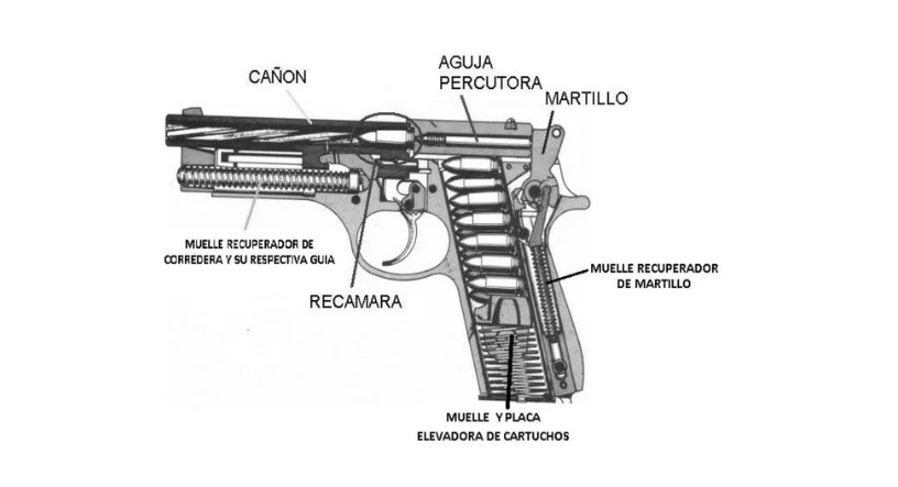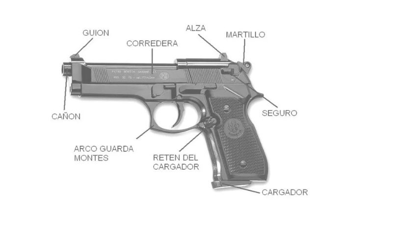 “Esto es porque es una pistola de tipo acción simple. Es una diferencia, por ejemplo, con las armas que utiliza la policía, que son de doble acción. En éstas, el movimiento es automático. Una vez que se presiona el disparador, el martillo de la pistola se monta solo y cuando se realice la presión necesaria, va a caer y el disparo sale. En la acción simple eso no ocurre, el tirador antes tiene que montar el cartucho. Por ejemplo, con el movimiento de la corredera, que deja la bala en la recámara lista para salir”, relató un perito balístico a Infobae.