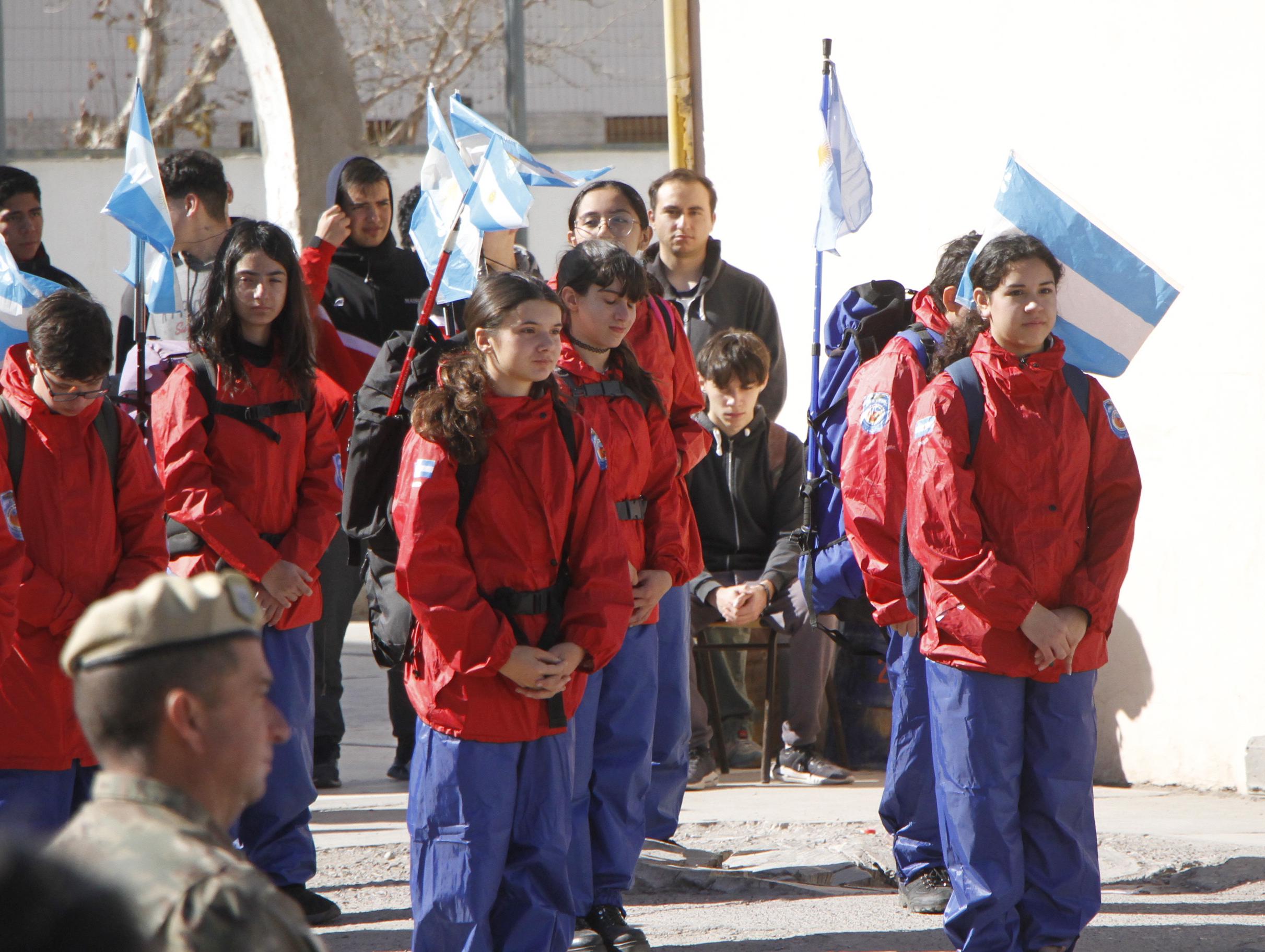 Ayer, en el marco de la conmemoración del aniversario del fallecimiento del General San Martin, en la Escuela Industrial se realizó el cambio de abanderados de la Bandera del Ejército de los Andes y se distinguió a los alumnos de Montañismo.