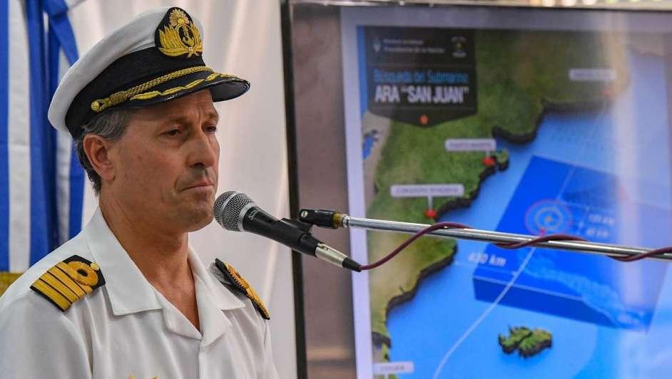 El vocero de la Armada, Enrique Balbi, habla con los medios después de las dos suspensiones consecutivas en el día de ayer. Se trató del primer día sin conferencia de prensa después de casi un mes de desaparición del submarino ARA San Juan.