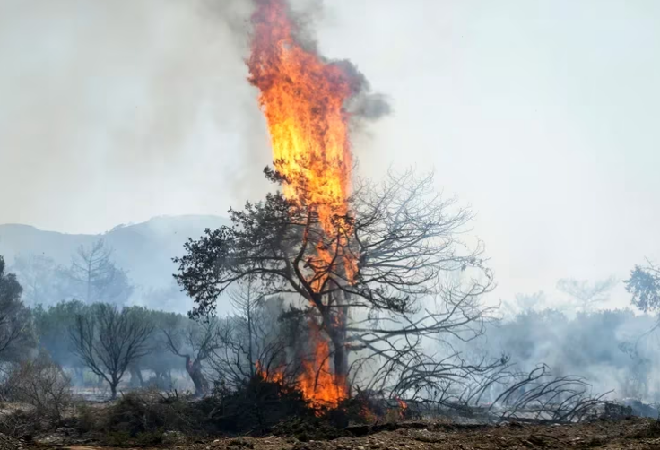 En condiciones climatológicas que se prevén adversas, con altas temperaturas y fuertes vientos, unos 270 bomberos participan en los arduos intentos de contener las llamas en Rodas, que ya han calcinado más de 14.000 hectáreas de bosque y varias viviendas, además de matar un número de animales aún no cuantificado.