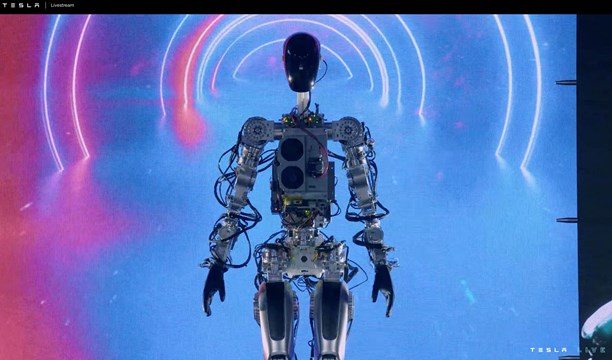 Elon Musk presentó a Optimus, el robot humanoide desarrollado por Tesla durante el Día de la Inteligencia Artificial (IA), evento celebrado ayer viernes en su sede de Palo Alto, en California, EE.UU.
