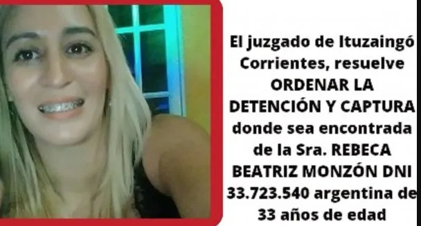 El juzgado de Ituzaingó resolvió "ordenar la captura y detención de la señora Rebeca Beatriz Monzón de 36 años", madre del menor Mateo Nicolás Rodríguez de seis años de edad desaparecido desde el 14 de abril en la localidad de Ituzaingó provincia de Corrientes.