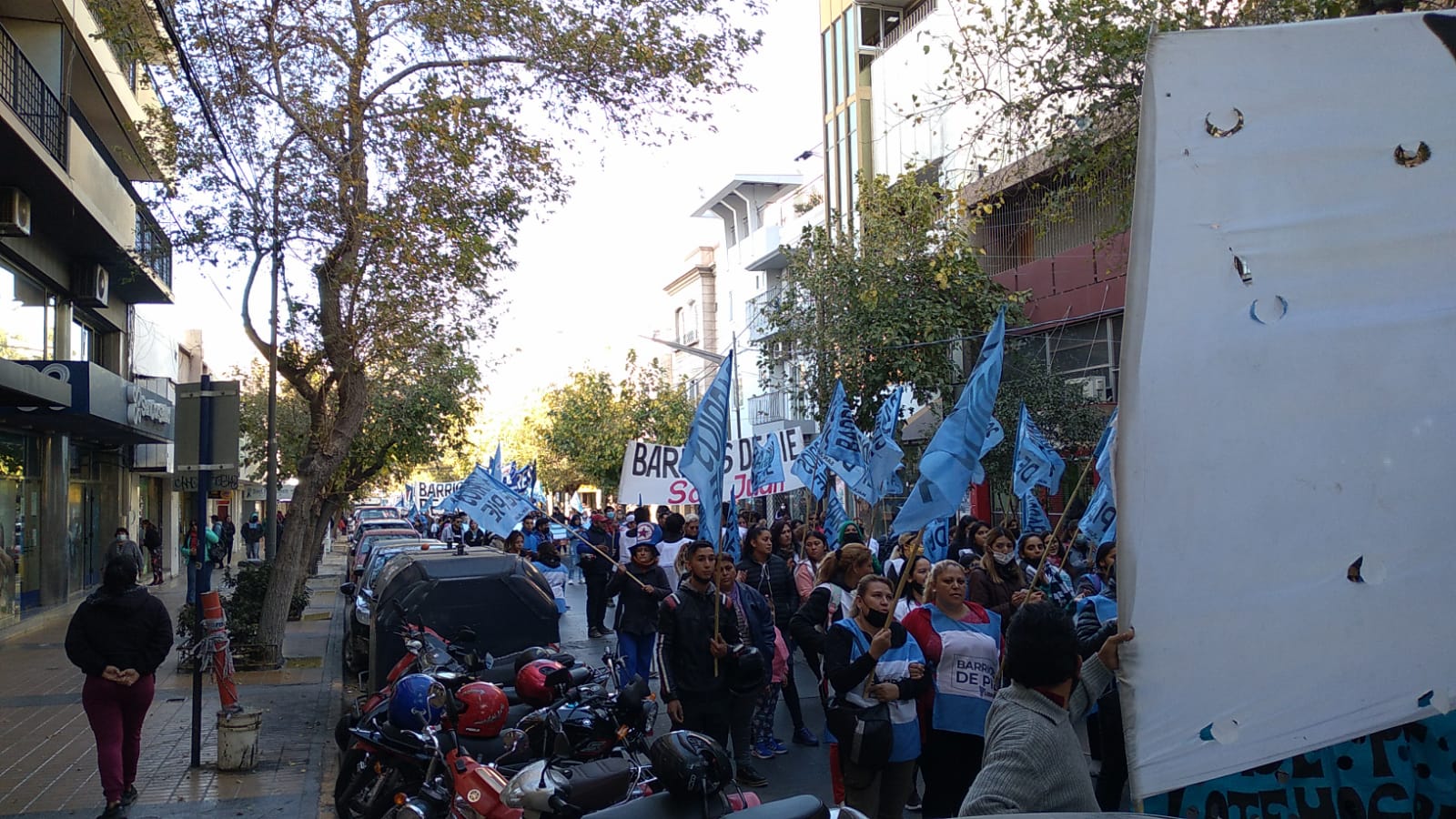 Con altavoces, banderas, pancartas y chalecos, grandes y chicos marcharon desde diferentes puntos de la ciudad y confluyeron en el punto cero de la provincia. Las columnas de ambas organizaciones se extendieron en más de cinco cuadras.