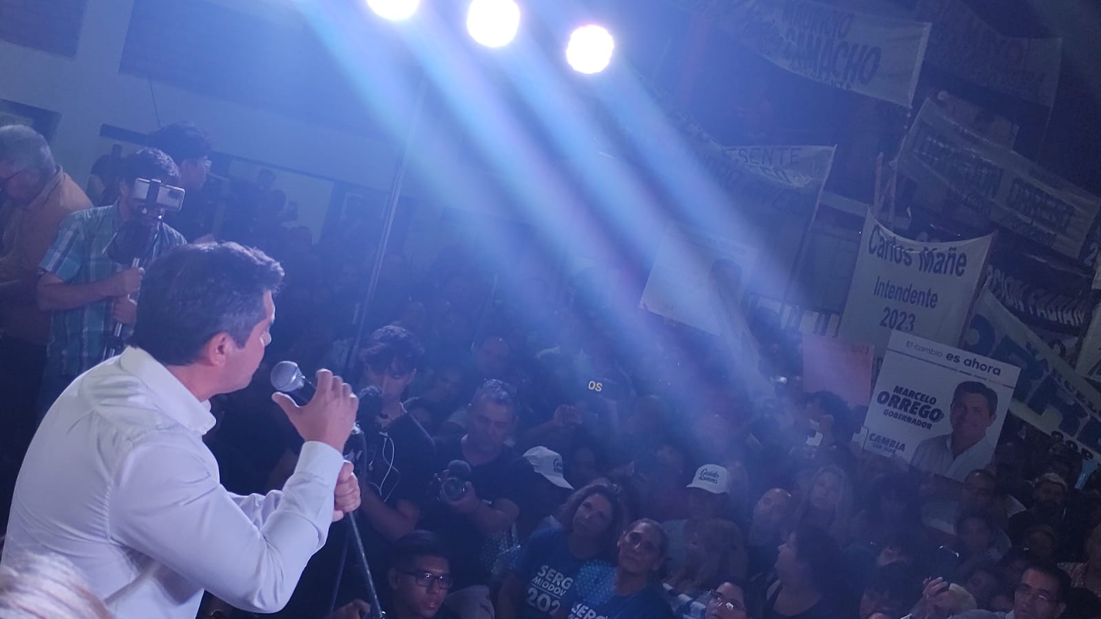De entrada levantó a la muchedumbre cuando dijo "quiero ser gobernador de San Juan". Orregó ensayó en sus palabras fuertes críticas a la gestión uñaquista y a la de Alberto Fernández. Primero lo hizo en rueda de prensa y luego en el discurso.