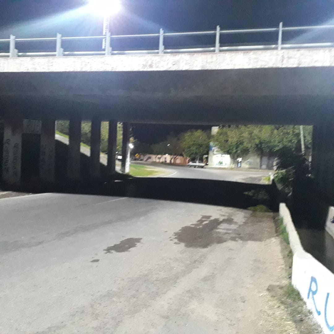 Un lector envió una imagen y el siguiente comentario: "Realmente resulta un peligro pasar por debajo del punte de Ruta 40, a la altura del Lateral Sur de Circunvlación".