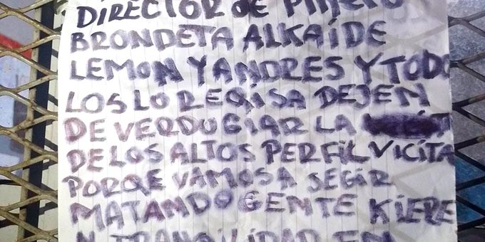 “Director de Piñero, Alcalde y personal de requisa: dejen de verduguear a las visitas de los alto perfil porque van a seguir matando gente. ¿Quieren tranquilidad?”, decía la nota con errores gramaticales y de ortografía. La señal es obvia: el penal de Piñero aloja a muchos de los hampones de las líneas medias de las principales bandas que operan en la zona.