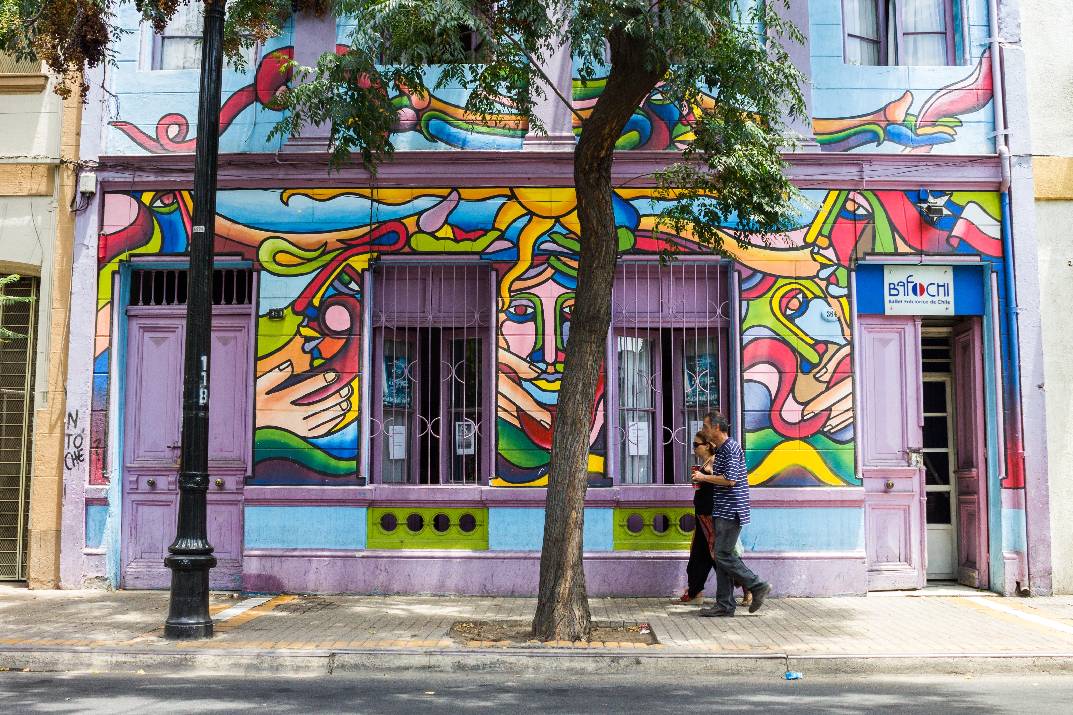 .Paredes que cuentan historias. Un modo diferente de pasear por Santiago es siguiendo los murales, dibujos y graffitis que desde hace años le ponen color y contenido social a las fachadas de muchas viviendas y edificios. El barrio Bellavista, ubicado entre el Río Mapocho y el Cerro San Cristóbal, es uno de los mejores lugares de la ciudad para disfrutar del arte callejero. No hay un cálculo certero de la cantidad, pero sin temor a equivocarse son decenas y decenas de trabajos de muralistas algunos reconocidos y otros más incipientes- que pueblan sus paredes y las distinguen del resto. Es que el potencial visual le da una estética particular a este rinconcito de la ciudad.