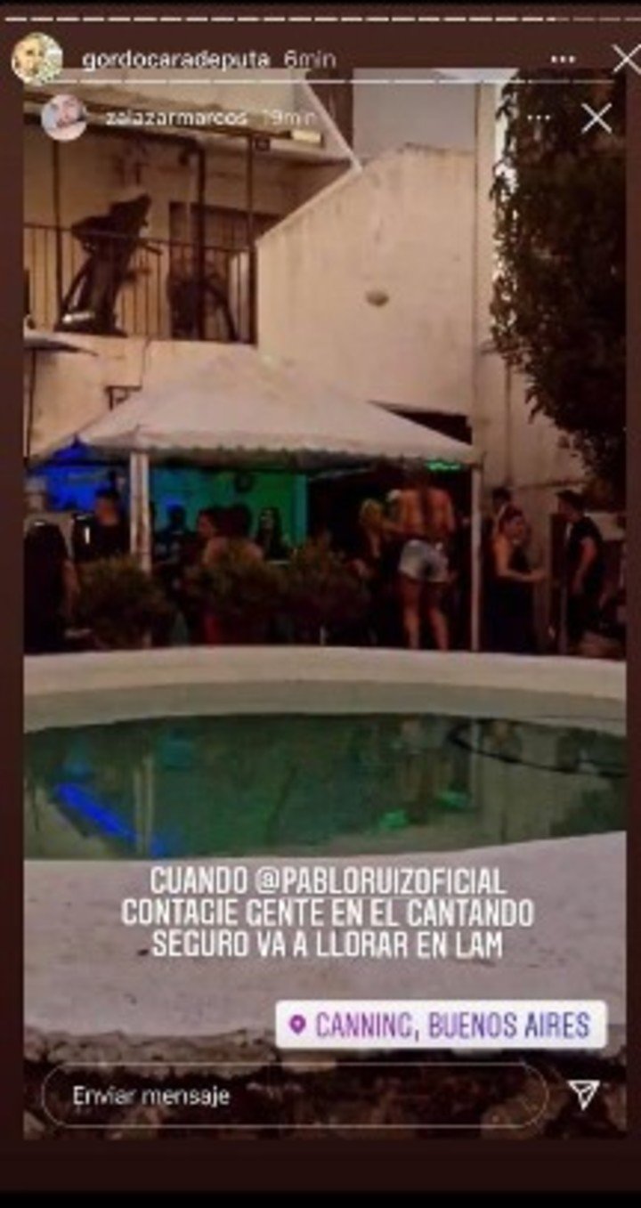 Las imágenes fueron difundidas por distintas personas que asistieron a la fiesta clandestina. Uno de ellos, se quejó: "Cuanto Pablito Ruiz contagie gente en el Cantando seguro va a llorar en LAM".