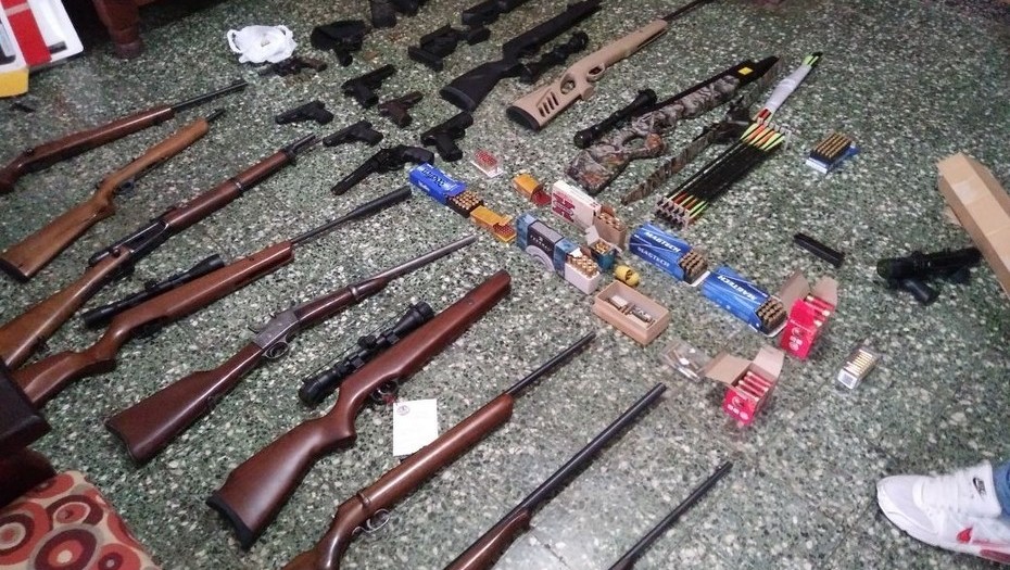 “Le secuestraron 11 armas de fuego, carabinas y escopetas de distintos calibres, marca y modelo, un total de 13 armas de puño, carabinas y fusiles de fogueo y aire comprimido, una ballesta, 150 cartuchos de escopeta, 721 cartuchos de armas de puño de distintos calibres, seis garrafas se gas comprimido y 2.000 balines de aire comprimido”, detallaron fuentes policiales.