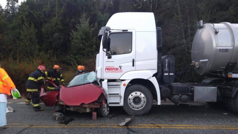 "El chofer del camión dijo que la ruta estaba muy húmeda y con hielo", contó Troncoso. Y agregó, que el camionero no pudo evitar el choque y terminó arrastrando el auto unos 13 metros.