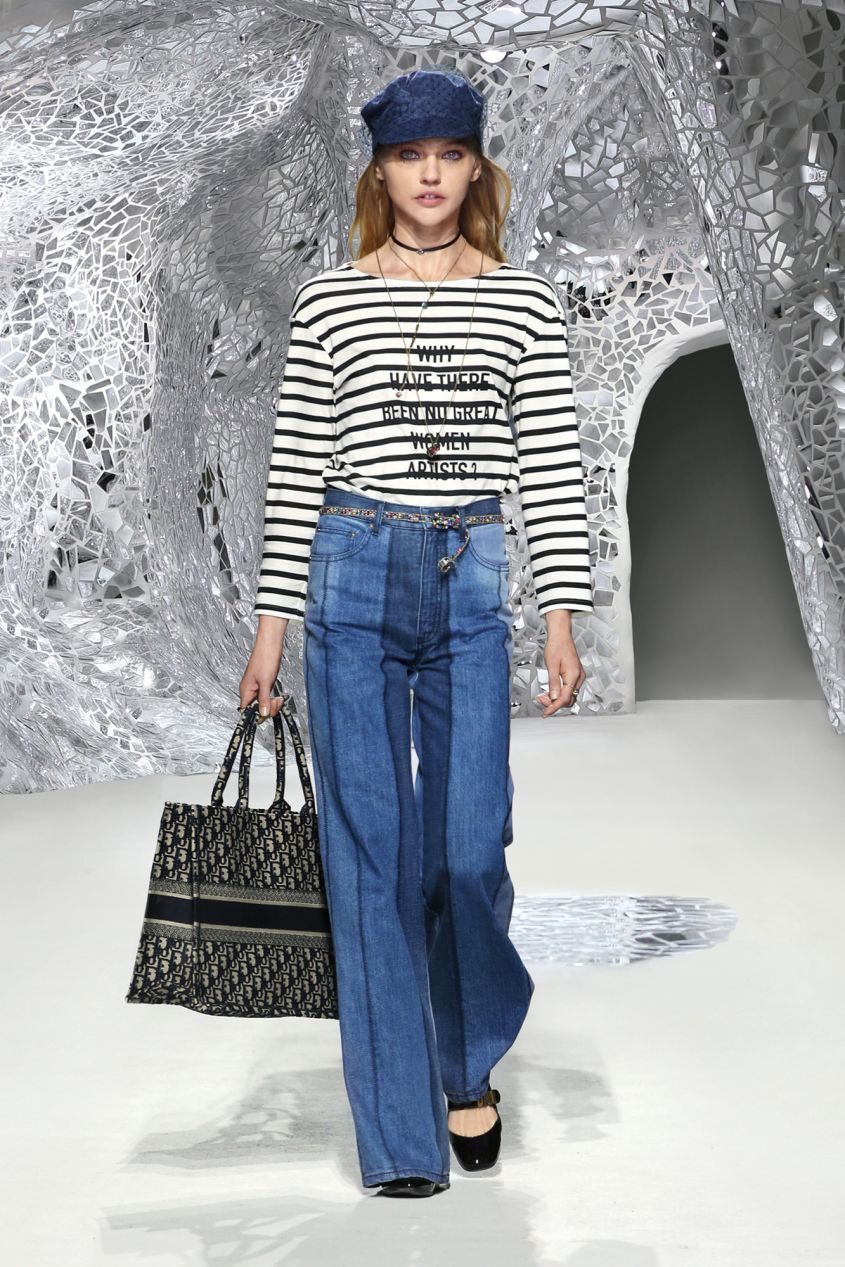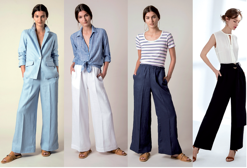 En cuanto a las características de los pantalones, el mencionado tiro alto no es negociable, como también que la silueta no se ajuste a las piernas. La única concesión que puede hacerse es la de perfilar las caderas, pero luego el patrón se extenderá hasta donde se quiera: lo mismo puede terminar antes de que toque el tobillo que conquistar el suelo. Y, esa libertad se hace extensible al manual de uso.