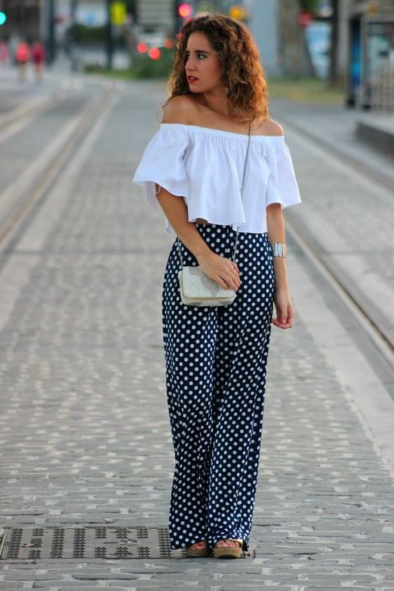 Los tops cortos, son una prenda ideal para combinar con un pantalón palazzo porque alargan la figura.
