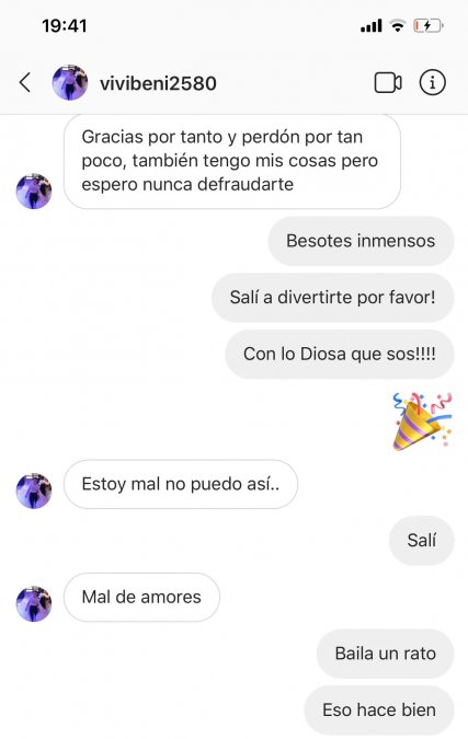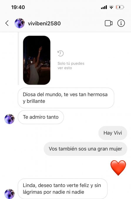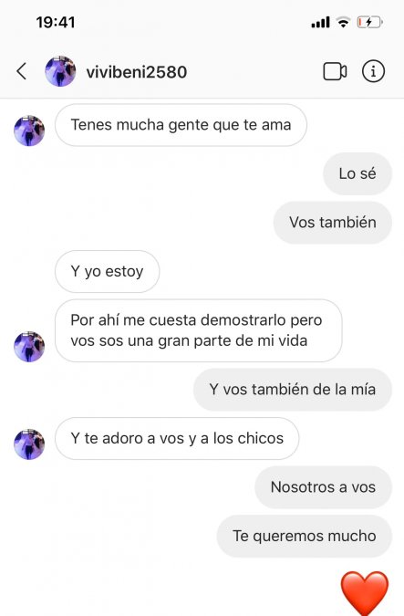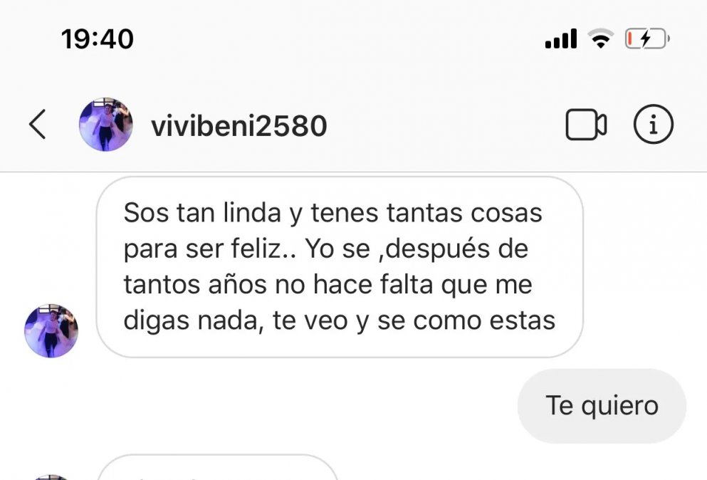 Además se ve cómo Benítez le confía sus cosas más íntimas y le dedicaba amorosas palabras: "Sos tan linda y tenés tantas cosas para ser feliz. Después de tantos años no hace falta que me digas nada, te veo y sé cómo estás".