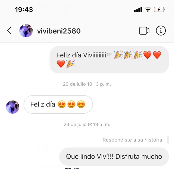 En algunos de los posteos, se puede ver cómo la jurado del "Bailando" le envía un "Feliz año", en otro le escribe "Te amo vivi, sos de mi familia" y hasta le dice "salí a divertirte por favor con lo diosa que sos".