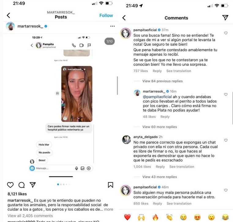 Mar Tarrés encabeza una campaña para crear un hospital público veterinario y pide ayuda a distintos famosos. Ante la negativa de Pampita Ardohain, no dudó en escracharla en sus redes sociales. Furiosa, la modelo salió al cruce y la influencer decidió borrar el posteo.