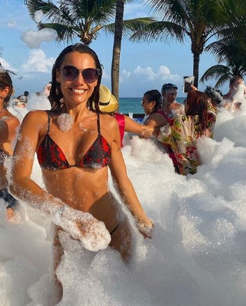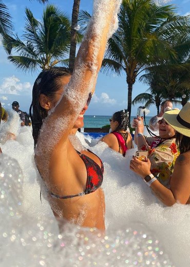 Este jueves hubo una fiesta de la espuma en el lugar y Pampita compartió postales, donde se la ve bailando alegre en bikini. Más tarde, compartió otras imágenes de su estadía en el paradisíco lugar.