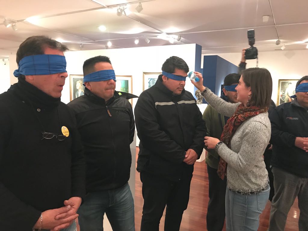 Señores con los ojos vendados en la sala principal del Museo Provincial de Bellas Artes Franklin Rawson no es algo que se vea todos los días, aunque no es algo muy descabellado teniendo en cuenta los proyectos e iniciativas que se encaran desde el museo. Esta vez son taxistas que participan de una capacitación que es parte del programa Redmóvil diseñado por Natalia Segurado, que apunta a acercar a los choferes al museo y que multipliquen lo que conocieron entre sus familias y hogares; y especialmente con sus pasajeros, tanto de la provincia como de fuera de ella, con los que sirven de nexo. El proyecto fue realizado en el marco de Laboratorio de Fundación Typa, donde Segurado, que es parte del equipo del museo, participó becada por el Banco San Juan.
