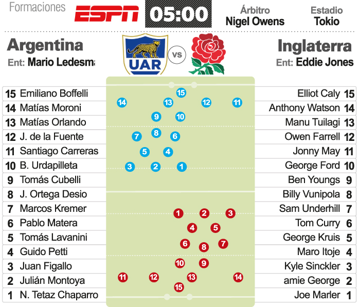 Dicho de otra manera, para que Los Pumas puedan ganar mañana en Tokio la ecuación se ve más sencilla del lado que la Rosa tenga un pésimo juego más que los argentinos destacarse. Es decir, depende más del rival que de los propios jugadores nacionales.