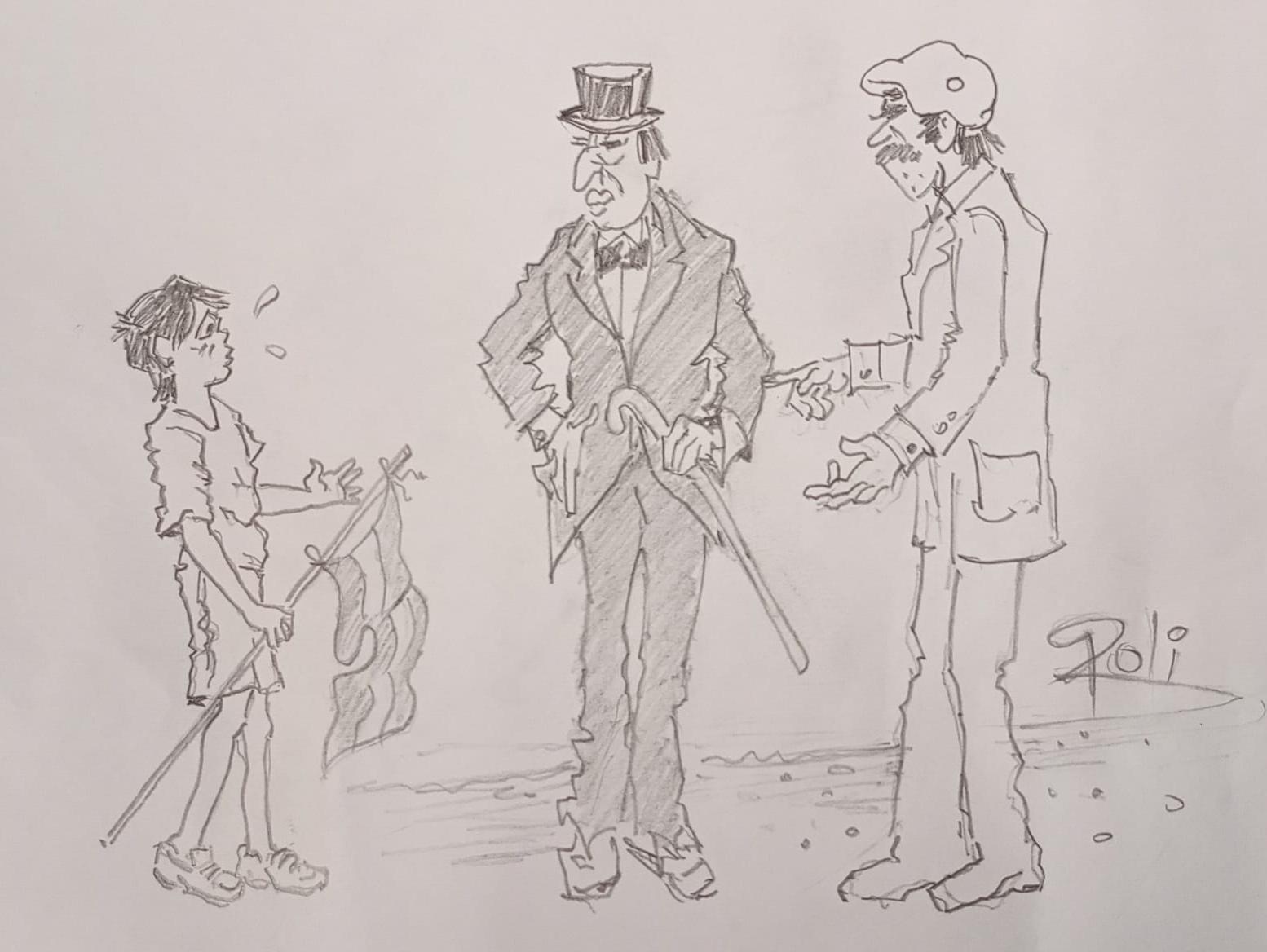 En esa caricatura se trataban de expresar las diferencias sociales entre ambos candidatos. A De la Torre se lo ve de impecable traje, e Yrigoyen también de traje, pero más sencillo y sin abotonar. Quería significar así una actitud campechana y abierta frente a la rigidez bien vestida del conservador. Otro detalle distintivo, el sombrero elegante de De la Torre, y la boina blanca que exhibe Yrigoyen y que fue característico, aún hoy, para los militantes radicales. El niño vendría a representar la joven democracia, en ese año de 1916 (foto).