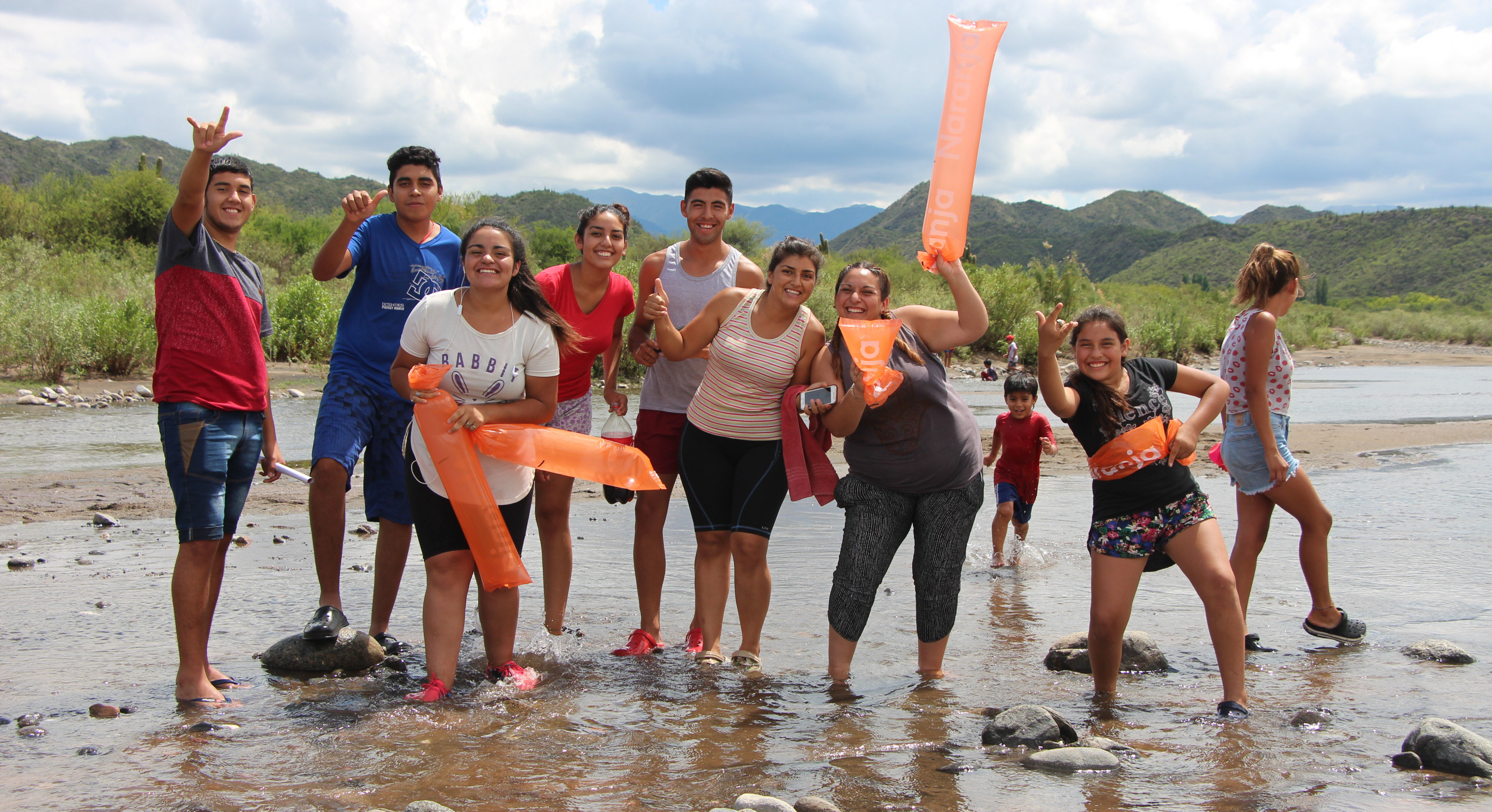 ¡Un alivio! Descalzos y por el intenso calor en plena siesta vallista, los vecinos esperaron el paso del pelotón con los pies en el agua del río. Por ese badén pasaron los ciclistas, por fortuna sin caídas.